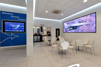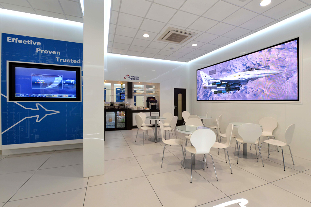 Mayhart Ltd has specified and installed a permanent installation of solid state media players, projectors and TFT screens for a world leading UK based aero engine manufacturer. This included a striking 15 screen synchronised displa in the entrance area comprising mixed size screens both in portrait and landscape.