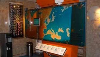 This project used custom written software and sensor buttons mounted behind the glass control panel to move the screen to programme locations and play the relevant video for the selected topic.